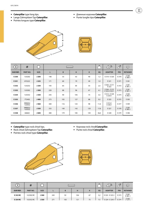 Коронка ковша CAT J250 довга (1U-3252 1U3252) - KTS